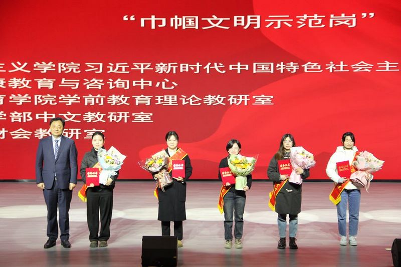 校领导为“巾帼建功标兵”“巾帼文明示范岗”和“文明家庭”获奖代表送上鲜花和荣誉证书,致以崇高的敬意和诚挚的祝福。